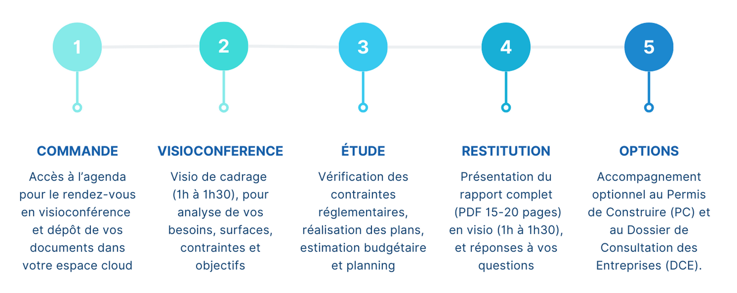 L’étude de projet est conçue pour être 100 % digitale. Si une visite terrain est nécessaire, elle peut être réalisée sur devis selon la localisation et la complexité du projet.